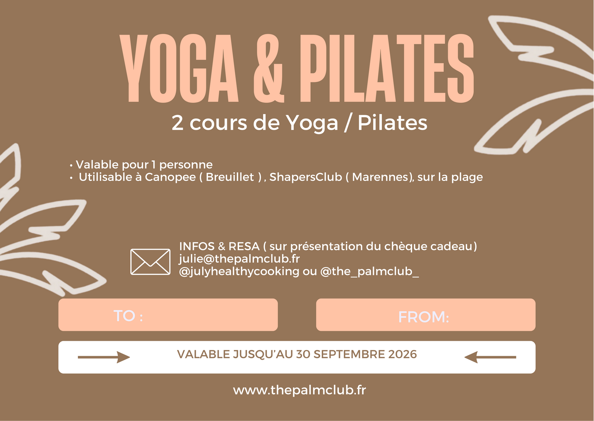Pour toute information supplémentaire ou demande de carte cadeau personnalisée : 💌 julie@thepalmclub.fr